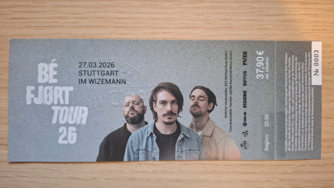 Zum Verkauf steht ein Ticket für das FJØRT Konzert am 27.03.2026 in Stuttgart, Im Wizemann.