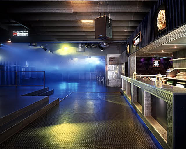 Der Klub ist direkt neben einem Studentenwohnheim, ca. 600 Leute gehen rein, glaube ich. Wirklich kein Schmuckstück. Hinter der eigentlichen Fläche, wo man vor der Bühne steht, gibt es noch einen Barbereich zum Sitzen, der etwas erhöht ist, von dort hat man auch einen Blick auf die Bühne.